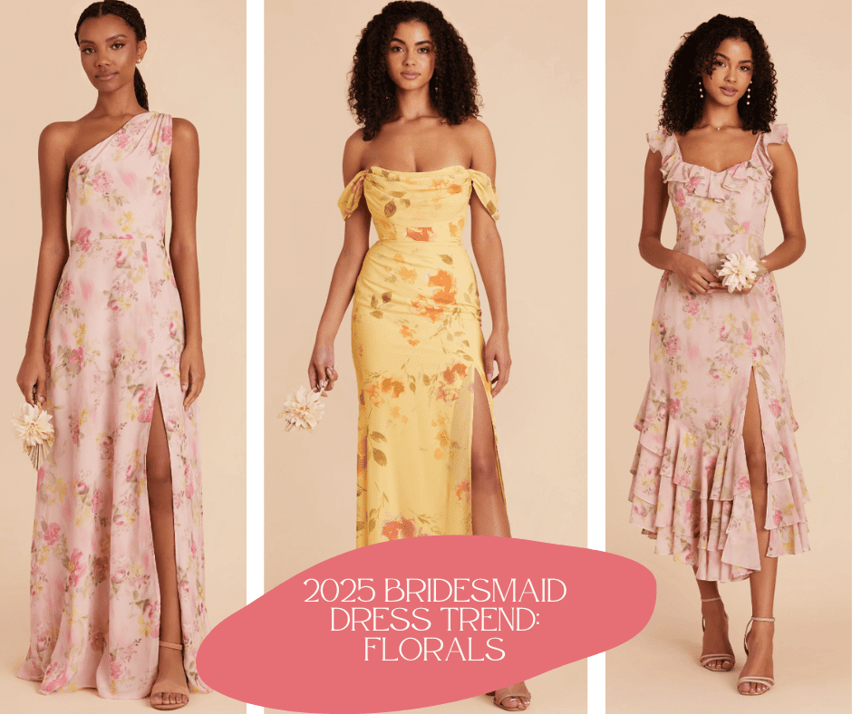 The trend of mismatched bridesmaid dresses continues to evolve in 2025. For floral prints, start with a print you love and look for colors that show up in the print as a throughline.”