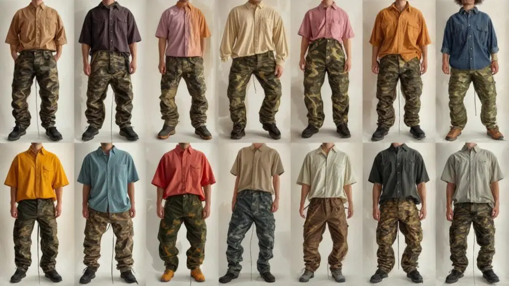 Fashion versatility requires building a foundation of reliable combinations while leaving room for creative experimentation with statement pieces. Start with the neutral and earth tone options we’ve covered, then branch out to bolder choices as you become more comfortable styling camo pants.