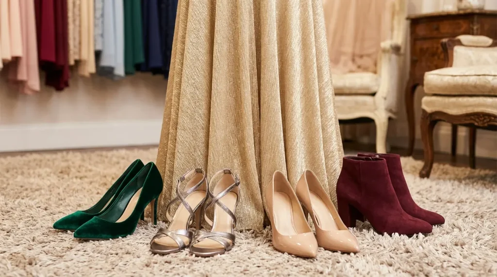 I’ve been there. Standing in my closet twenty minutes before a gala, staring at a shimmering gold gown and realizing I had absolutely no idea what to put on my feet. I tried on everything from black pumps to silver sandals, and honestly? Nothing felt right.