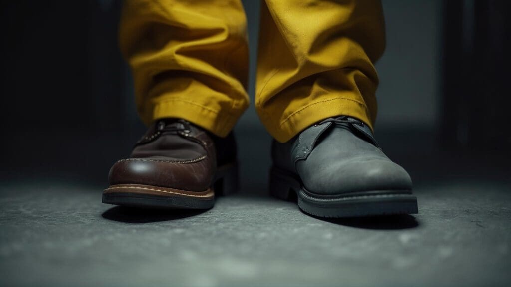 The cool undertones in gray create a temperature contrast with warm yellow, adding visual complexity and interest to the pairing. For a perfect business casual Friday look, I paired my mustard yellow slim-fit chinos with charcoal gray suede Chelsea boots, a crisp white button-down, and a navy blazer. The outfit received numerous compliments at the office, with colleagues specifically noting how the gray boots created a sophisticated foundation that balanced the boldness of the yellow pants without being as expected as black shoes would have been.