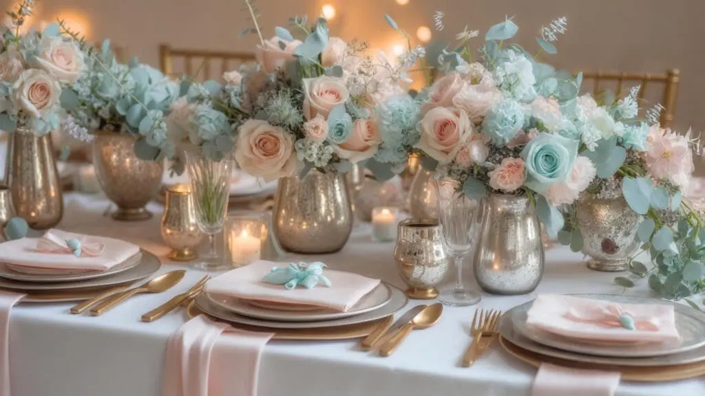 Mint green contains cooling properties that balance peach’s warmth, creating a psychologically balanced environment for guests. I’ve noticed this combination tends to create a particularly relaxed atmosphere at receptions.