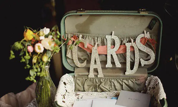 Head to a second hand store or an antique store to try to find an old suitcase. You can prop it open, place a sign inside, and use it as an item to display when guests walk in so that they know where to drop gifts. Using a vintage suitcase is a great idea if you’re having a more rustic or tropical themed wedding.