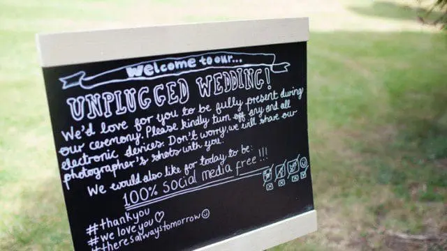 Put a note in the invitation so that your guests know ahead of time that you’re having a social media free wedding. That way, they won’t be shocked or surprised on the day of.