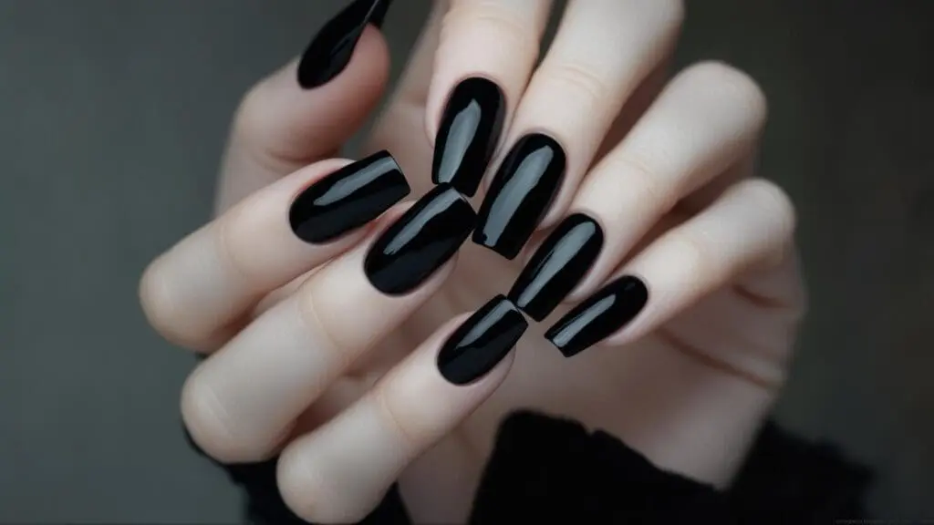 Black requires careful application because it shows every imperfection, but when done right, it’s absolutely stunning. It makes your hands look more dramatic and works excellently for artistic expression. Just know that it’s most striking on longer coffin nails where the shape’s drama can be fully appreciated.