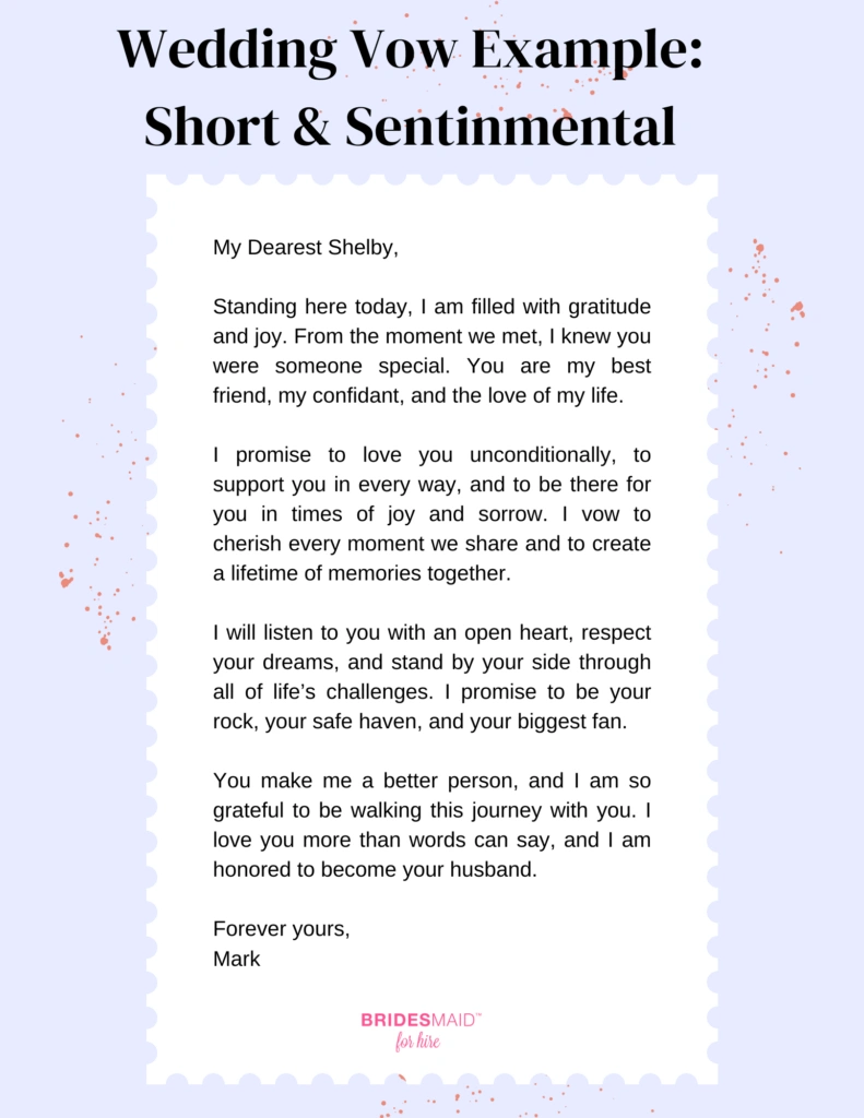 And don’t forget to add a touch of humor! A well-placed joke or lighthearted promise (like vowing to always let him choose the movie on date night) can add a personal touch and remind you both not to take life too seriously.