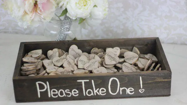 If a lot of your guests are coming in from out of town or there’s something specific that the town you’re getting married in is known for, consider using that item as your party favor. You can grab candy from the local candy shop, tiny bottles of maple syrup and print labels on them with your name.