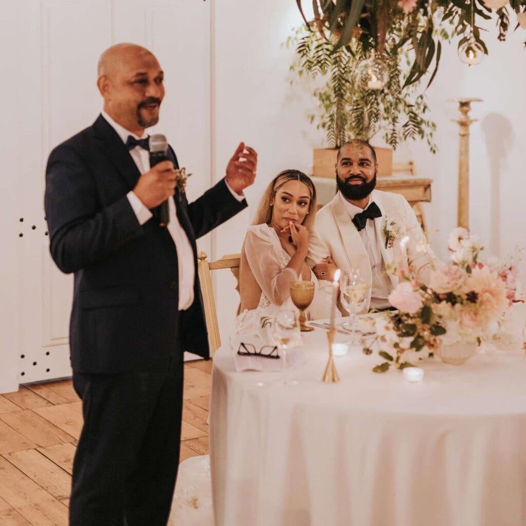 Pro-tip: Have 1-2 jokes for every minute of your speech. The best speeches are under 5-minutes long. For more tips, read this blog on how to write a funny father of the bride speech.