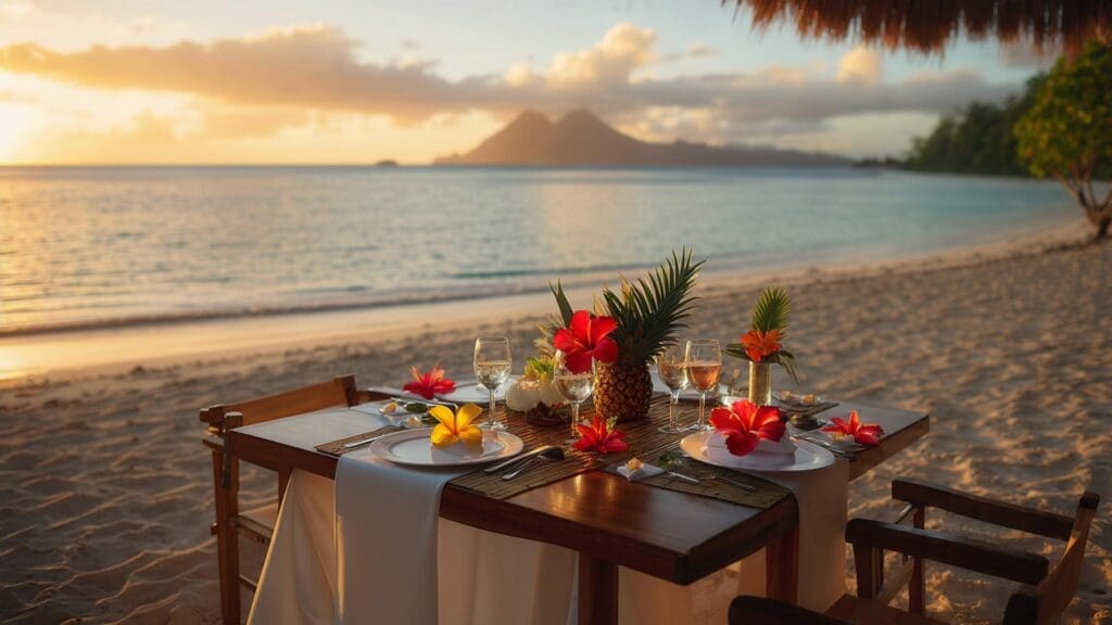 Fiji’s culinary scene blends traditional Pacific flavors with international cuisine, creating unique dining experiences that enhance honeymoon romance. Resort dining ranges from casual beachside grills to fine dining restaurants with personal chefs, while cultural dining experiences include traditional lovo feasts cooked in underground ovens and kava ceremony participation. Many properties offer private dining options on secluded beaches, floating pontoons, or clifftop locations for ultimate romantic experiences.