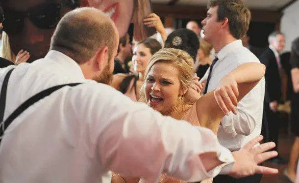 Even if you’re a naturally shy person, push yourself to keep a smile on your face and your feet on the dance floor. Say yes to fun opportunities (like trying out the photo booth or joining a Conga dance line).