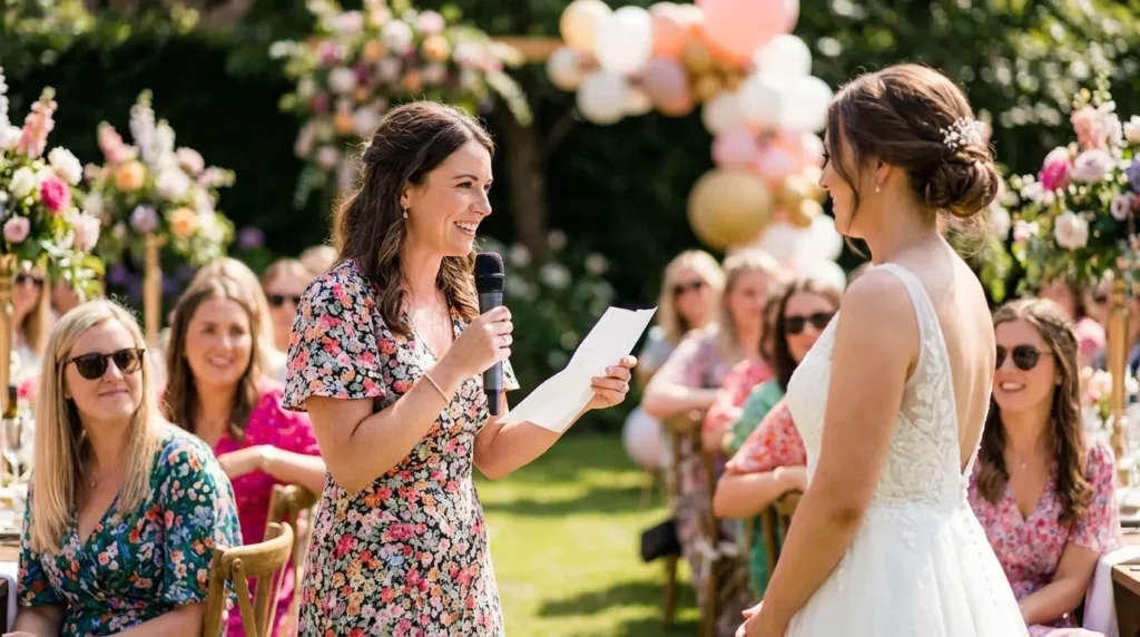 Know the difference: A shower speech is intimate and usually mostly women; the wedding toast is formal and for everyone. Don’t mix them up. Tell a story: Focus on the “Mother-Daughter” journey—raising her, watching her grow up, and letting her go. Keep it short: Aim for 3 to 5 minutes. Any longer and people start checking their phones.