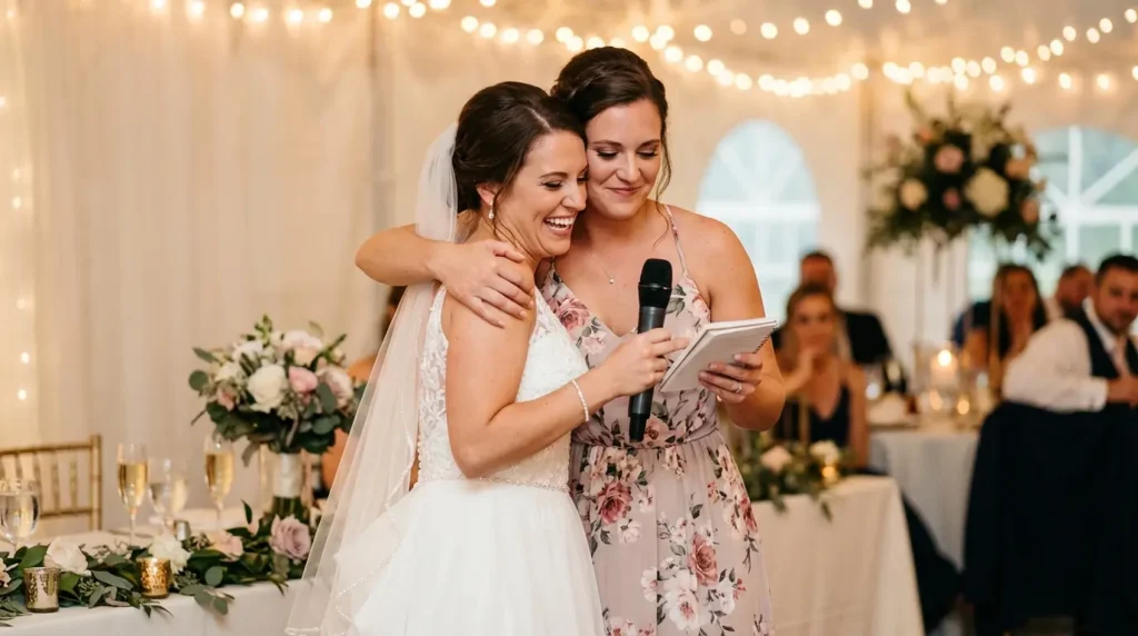 This is the heart of the speech. If you want to get the “awwws” and maybe a few tears, these are the lines for you. If you’re struggling to find that emotional depth, looking at heartfelt sister of the bride speech ideas might spark something.