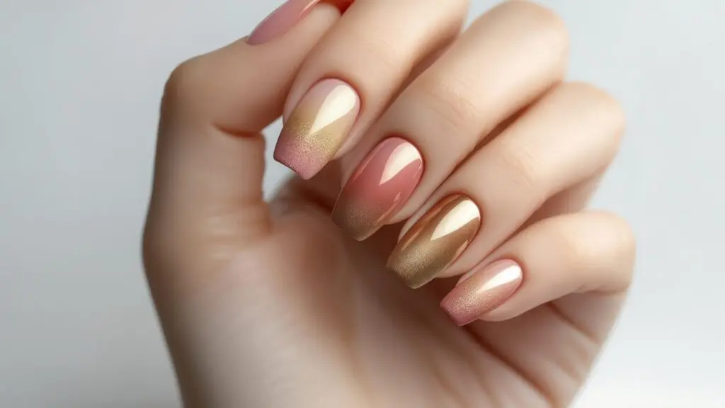 I discovered this rose gold ombre nail variation at a fashion show, and I’ve been experimenting with reverse gradients ever since. The unexpected color flow creates such visual interest and makes my fingers look longer and more elegant.