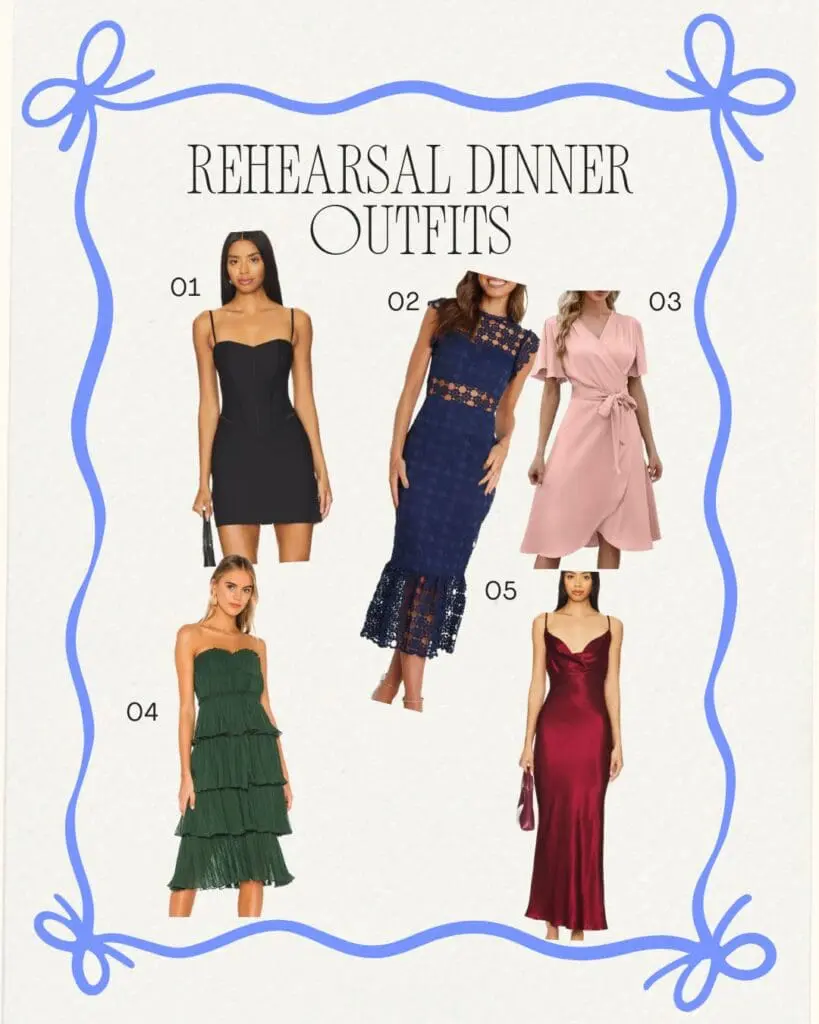 A classic little black dress becomes rehearsal dinner perfect with the addition of statement jewelry and elegant heels. Choose a sophisticated silhouette like a sheath or A-line that flatters your figure while remaining timeless and appropriate.