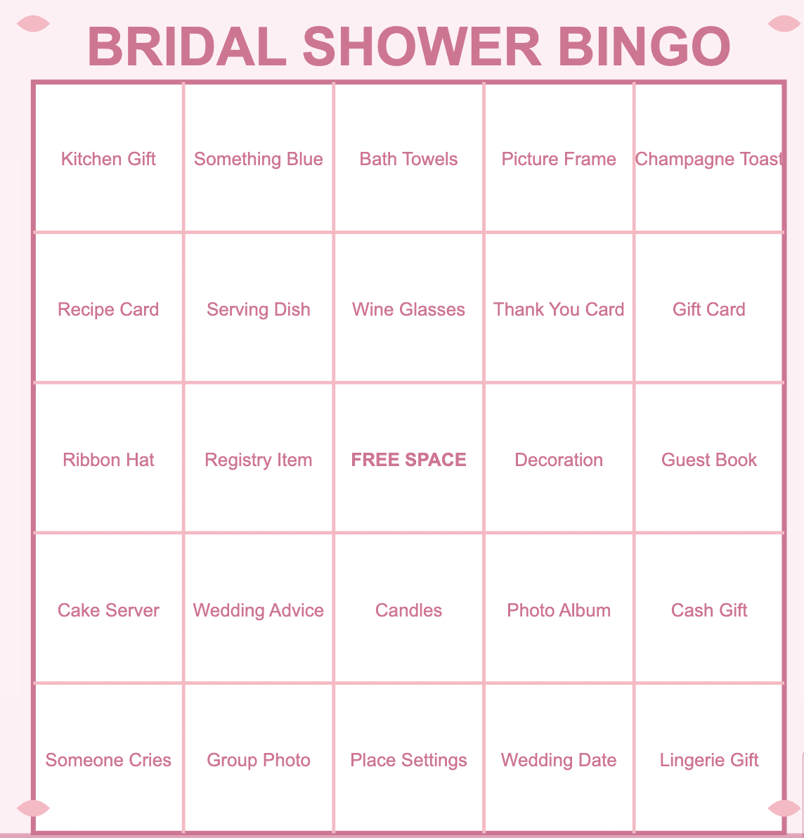 Wedding shower bingo typically starts as guests arrive, giving them time to review their cards before the main activities begin. The game can run throughout the entire shower or be focused on specific portions like: