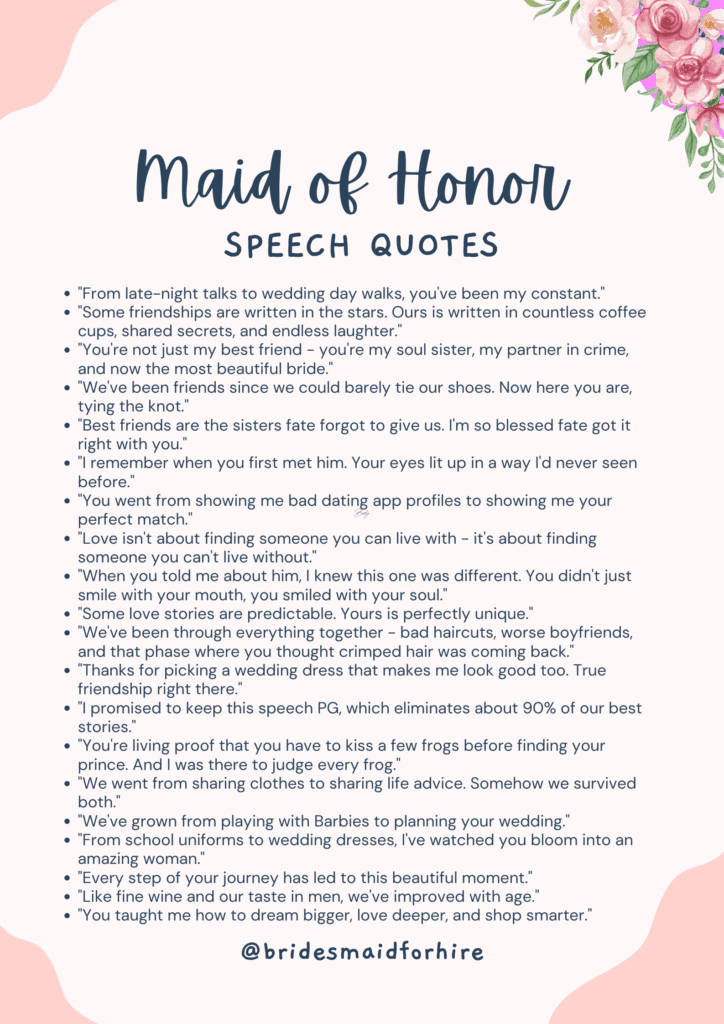 The maid of honor speech is a cherished wedding tradition that combines heartfelt memories, humor, and celebration of the newlyweds’ love story. As the bride’s chosen confidante, this speech offers a unique perspective on both her character and her journey with her new spouse. While the responsibility might seem daunting, following our structured guidelines will help you craft and deliver a memorable speech that honors your special relationship with the bride while welcoming her partner into your circle of friendship.