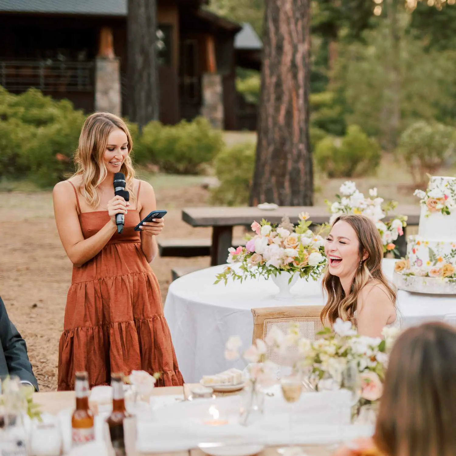 “Good evening everyone. I’m Lauren, Michael’s sister and self-appointed quality control expert for all his life decisions. I’m happy to report that choosing Jessica was his best one yet.