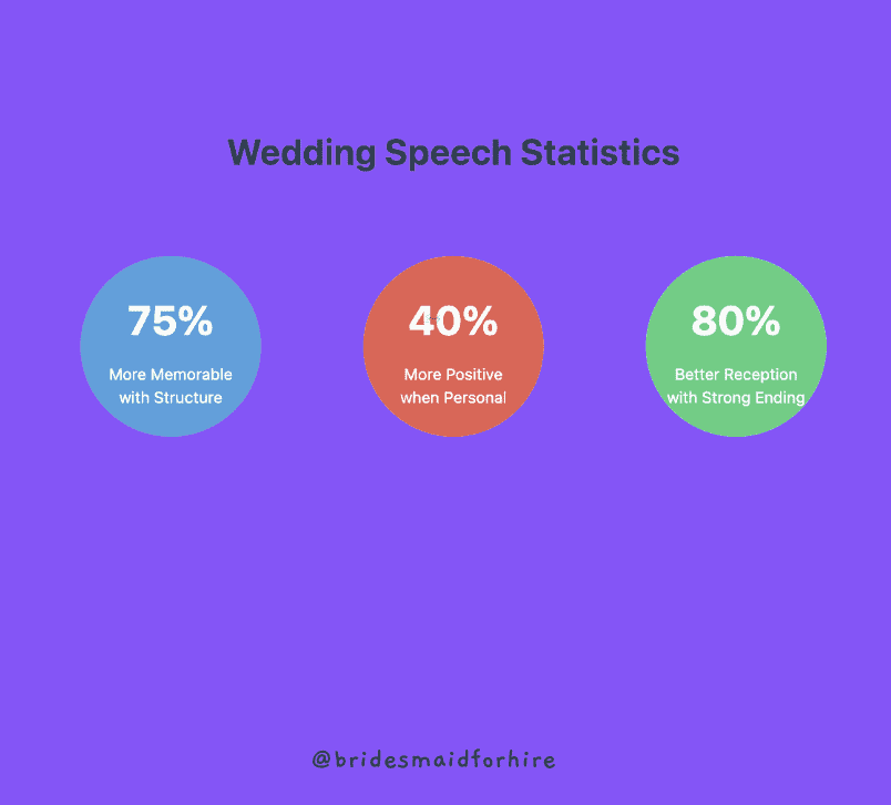 Well-structured wedding speeches are 75% more likely to be remembered by guests. It’s not just about what you say, but how you say it and how you organize your thoughts. A clear structure helps your audience follow along and absorb your message more effectively.